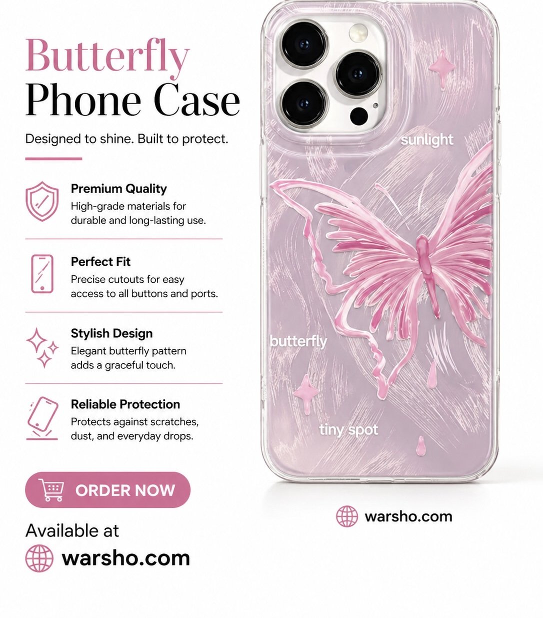 Perfect for everyday use, this case is ideal for those who love fashionable accessories while keeping their phone safe and secure. A perfect blend of style, protection, and elegance. 🦋✨
